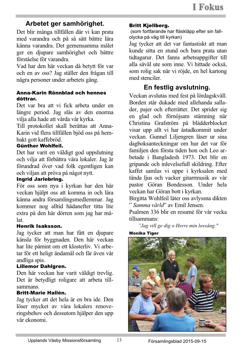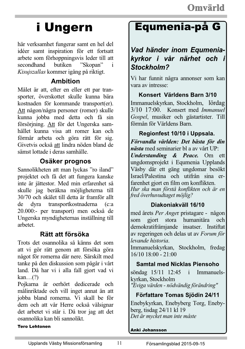 i Missionskyrkan i Upplands Väsby. Officiant var pastor Göran Bondesson