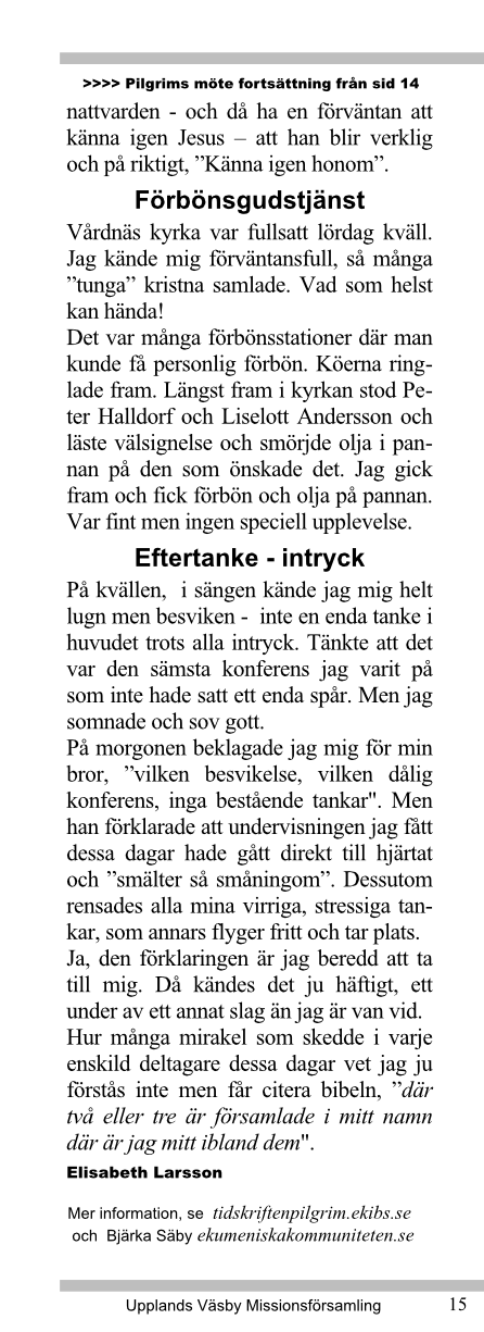 Pilgrims möte på Bjärka Säby! sid 14+15.1, i
