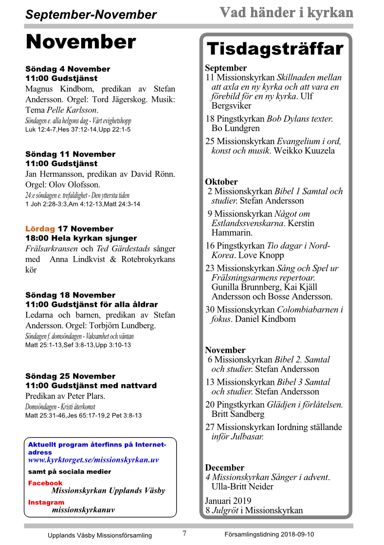 Upplands Väsby Missionsförsamling - församlingstidning 2018-09